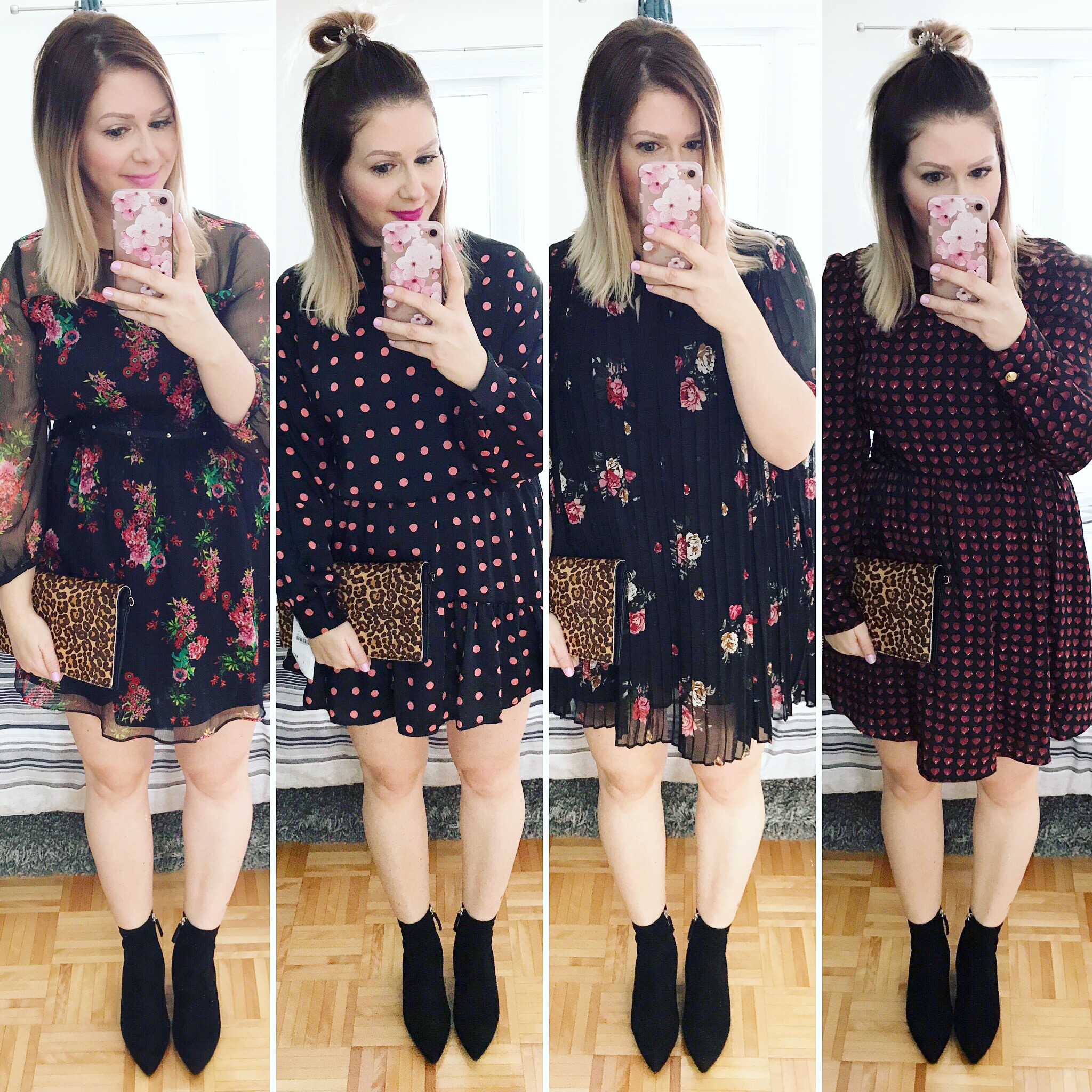 This cute little number is perfect to wear if you are going out to a fancy restaurant with bae on Valentine’s Day. The sheer sleeves, the stud integrated belt and the heart shaped neckline makes this dress very sophisticated and chic! The floral print adds fun & colour to the dark background of the dress. I added sock booties and a leopard clutch to complete the look.