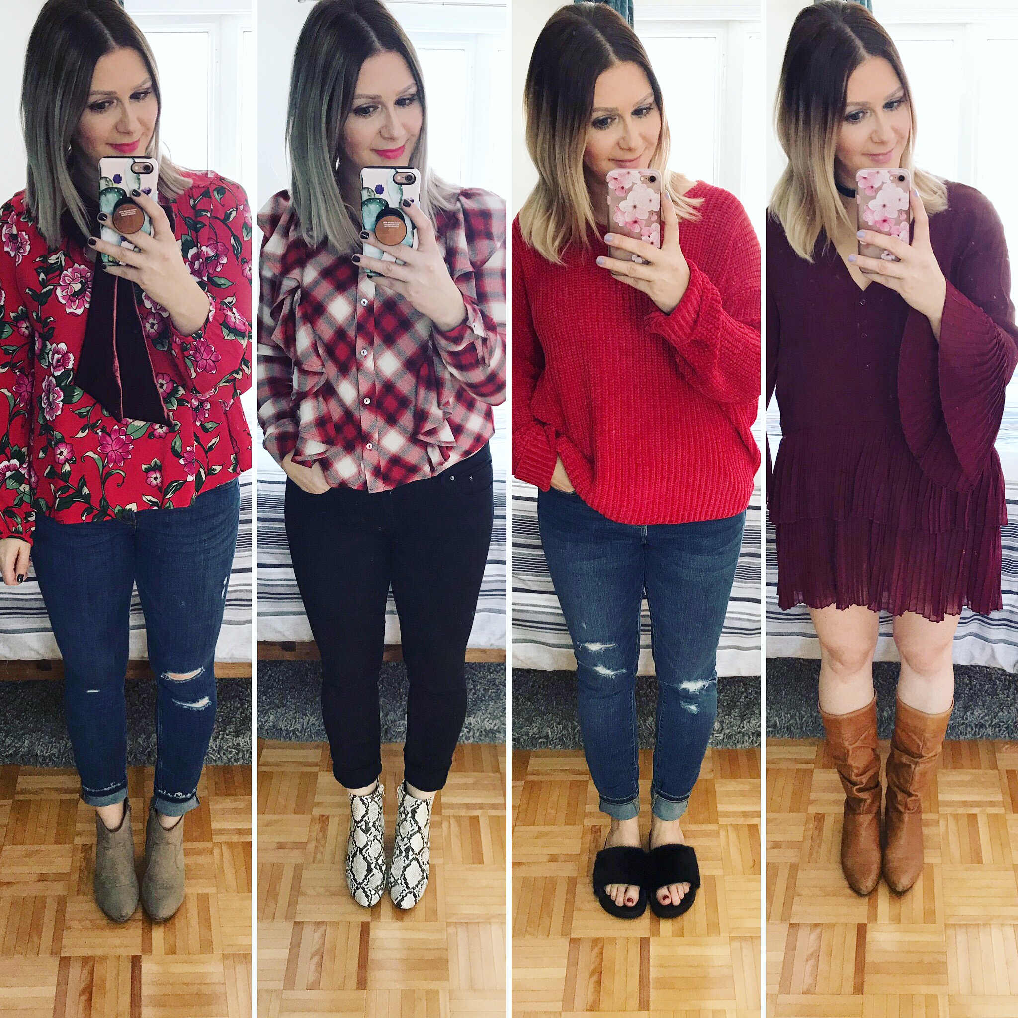 Not going out and staying in? I’ve got your covered with this red chenille sweater and denim combo which is the perfect outfit for you! It’s super casual and comfy & is great for the cold winter weather we are having! I have added some furry slides to finish off the look.