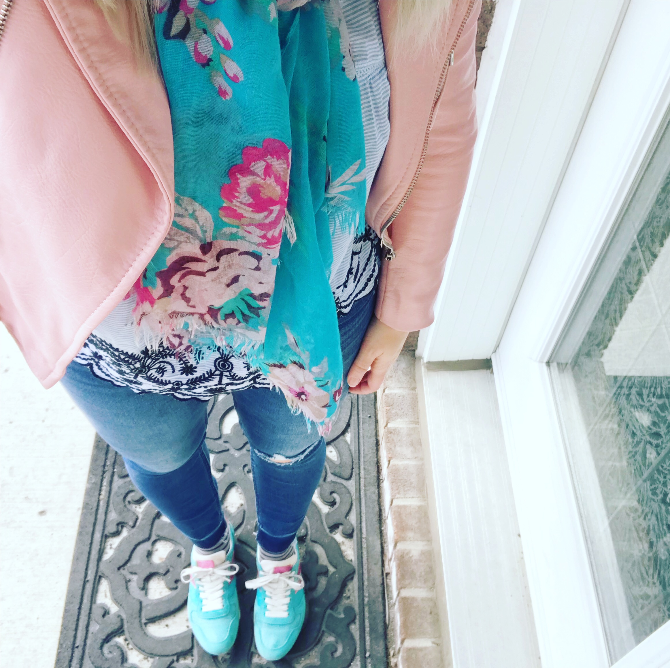 On Saturday, it was a bit chilly but sunny so I opted for a mix of blue & pink… which is probably my favourite combo ever for Spring!