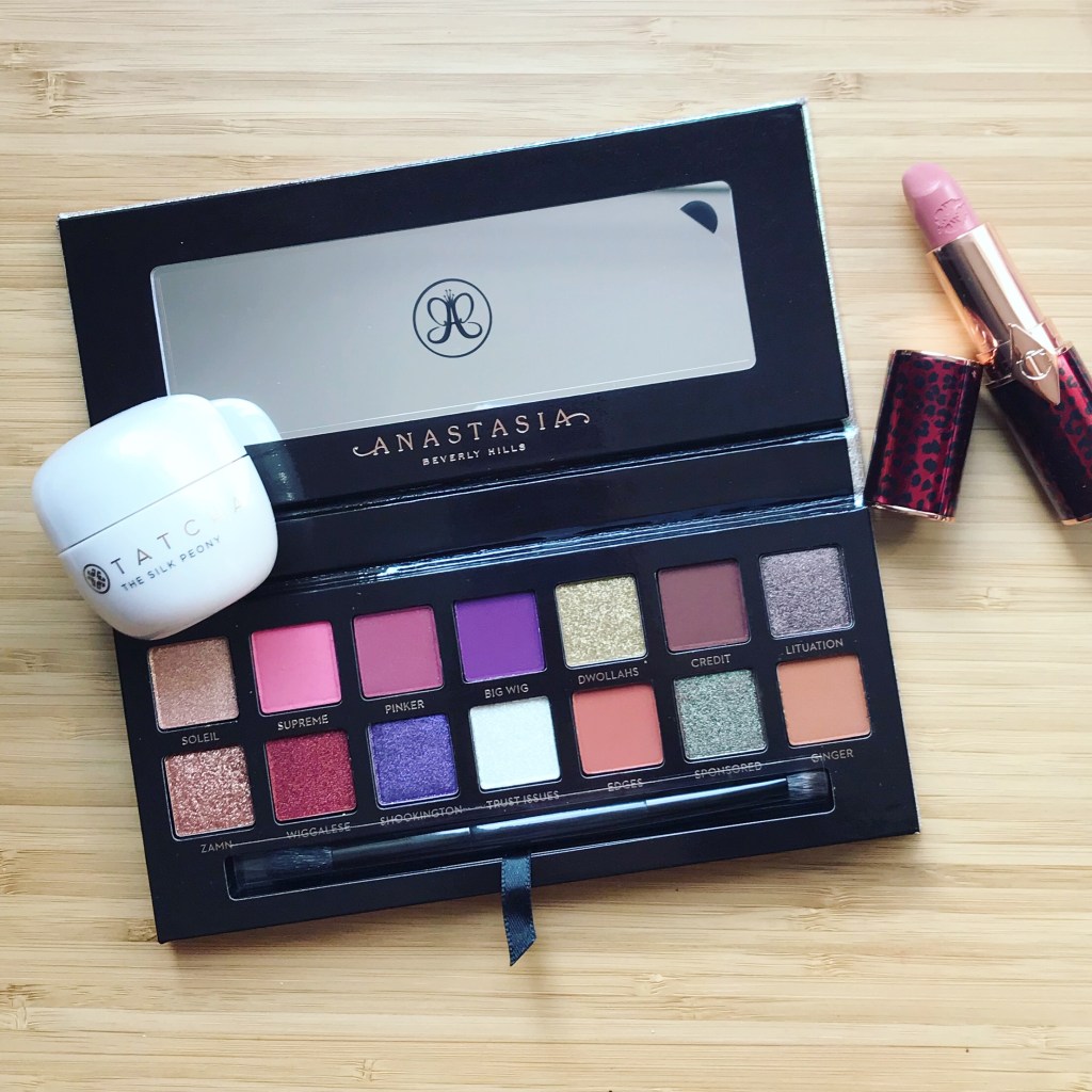 TATCHA THE SILK PEONY MELTING EYE CREAM (BUY HERE) | TATCHA PORE-PERFECTING MOISTURIZER AND CLEANSER KIT (NOT SHOWN ON PHOTO) (BUY HERE) | CHARLOTTE TILBURY HOT LIPS LIPSTICK 2 (BUY HERE) | ABH JACKIE AINA EYESHADOW PALETTE (BUY HERE)
