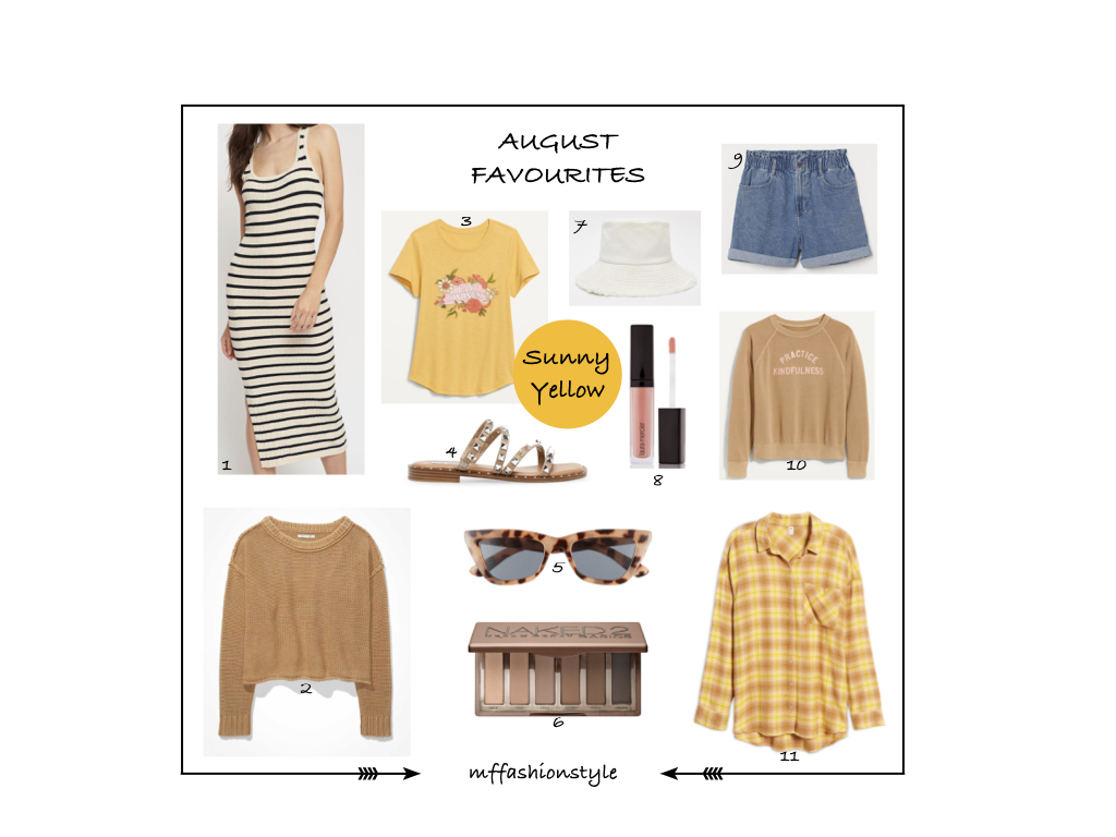 So, for this month’s picks, I chose to mix a bit of summer clothes with a few transitional layering pieces which I am slowly starting to incorporate into my wardrobe. Also, August is the sunflower month which I was very inspired by it and all those different shades of yellow!