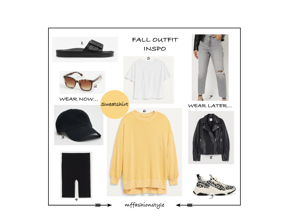 6. VINTAGE LONG SWEATSHIRT \ 7. DISTRESSED MOM JEANS \ 8. BIKER JACKET \